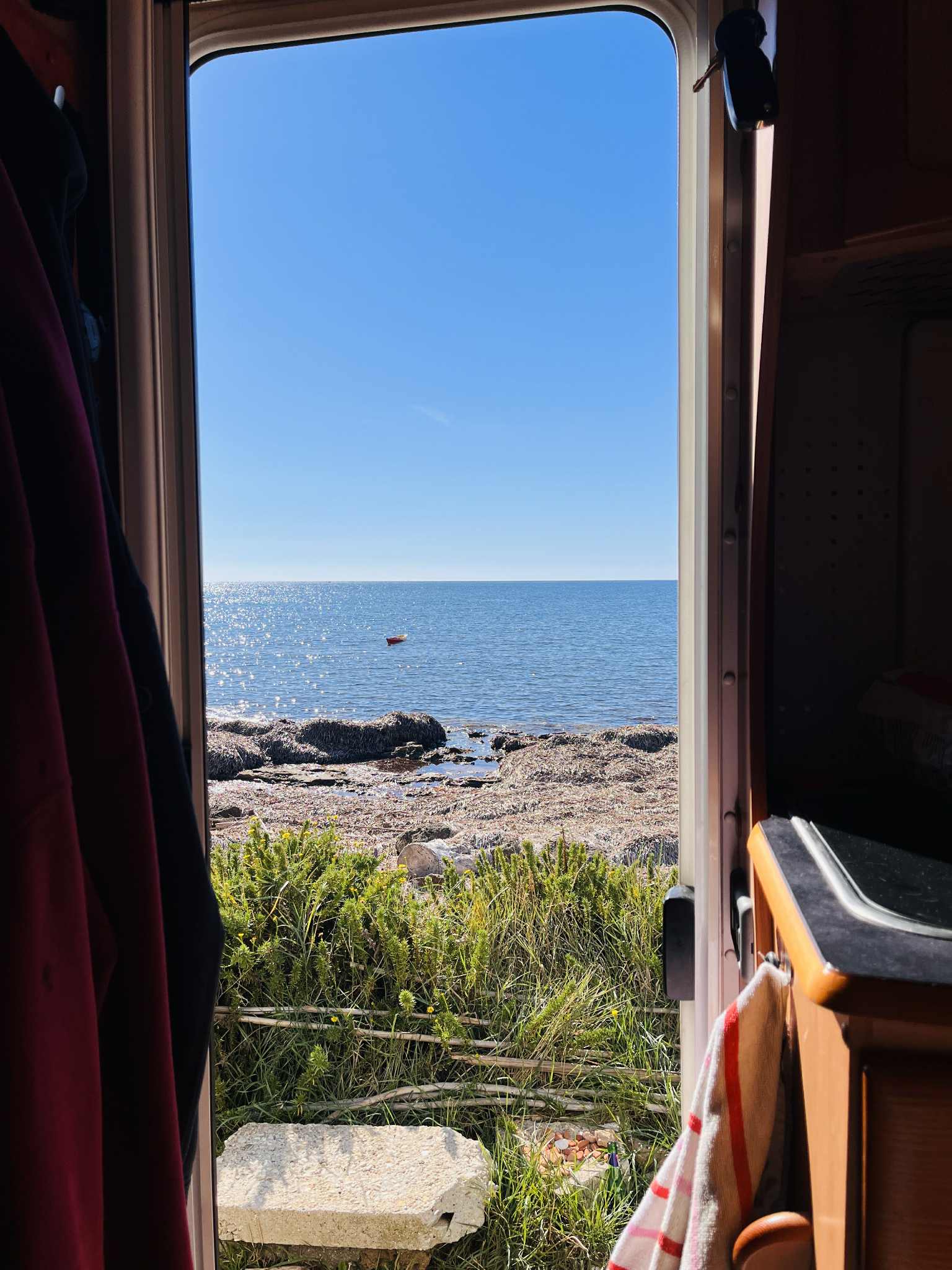 Vi tar oss ner, sakta sakta nedför. Det tar säkert över en timme. Annika hojtar i varje högerkurva om det är fritt, jag stannar, backar, tar omtag – och vidare ned mot nästa sväng. På några ställen finns vändplaner, och dem utnyttjar jag när vi får möte mitt i en kurva. Till slut planar vägen ut, hårnålskurvorna blir färre och vi kan andas ut. Husbilen svalnar. Det luktar lite brända bromsar – så till våren blir det byte runt om, plus ny olja i växellådan!