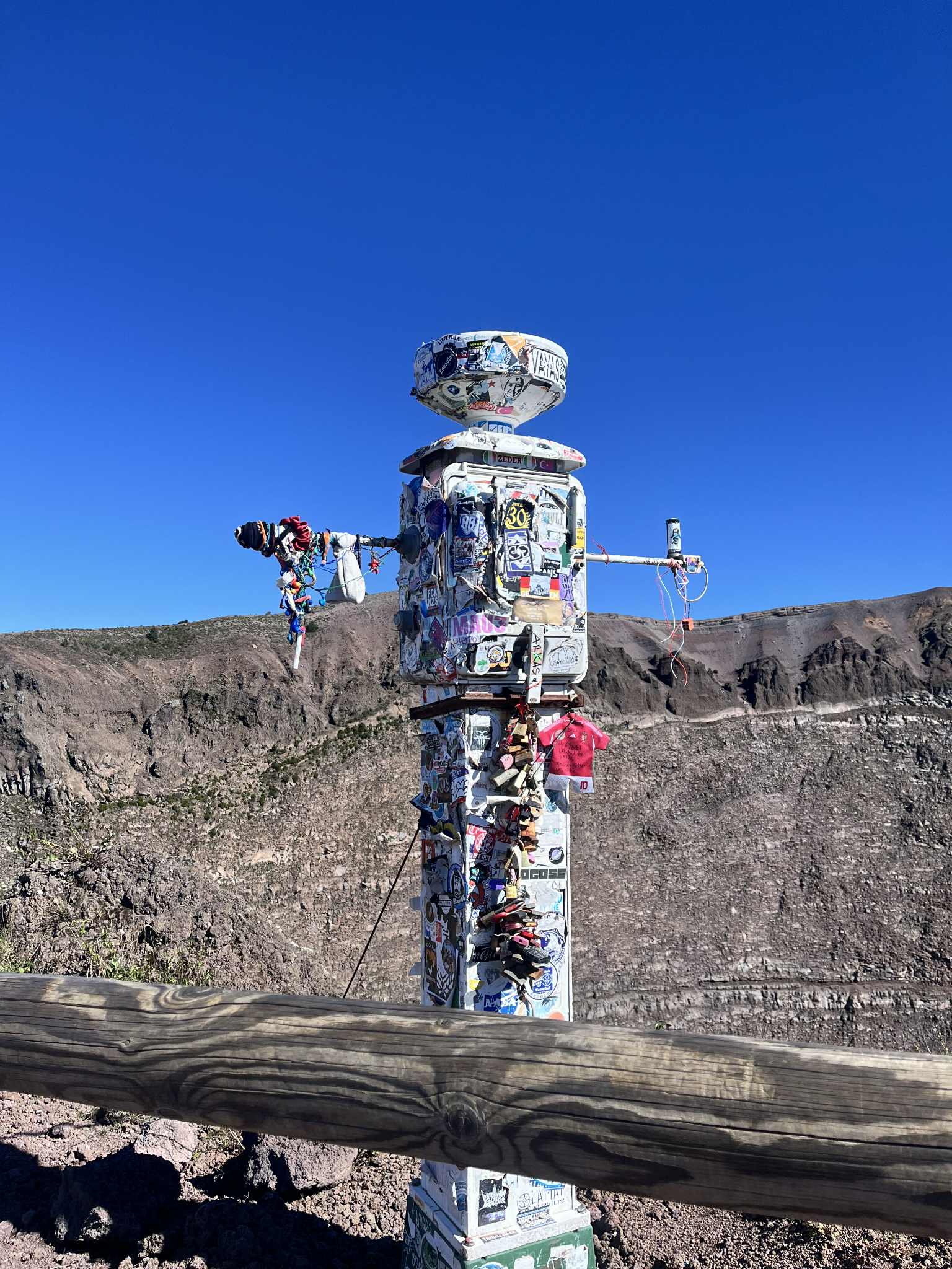 Vi stannar ibland för att släppa förbi bilar som samlas bakom oss. Vi kör till och med om några cyklister uppför – ja, även nedför, men dem ser man knappt till eftersom de håller sig på sin sida. Vid en turistinformation stannar vi igen. Jag luftar motorn och kollar så allt ser bra ut – det gör det. Jag frågar killen där hur långt det är kvar till toppen. Han ler och säger: ”Tio kilometer.” Aha – så det är inte slut ännu! Vi startar igen. Det är bara att tugga på, meter för meter. Vägen blir brantare, och det känns som att den aldrig tar slut. Till slut, efter dessa tio kilometer, kommer vi upp till en mindre skidort på toppen av berget – 2 758 meter över havet! Vi ser då att det är Stevilo passet vi håller på ta oss igenom! Hade vi ingen aning om..