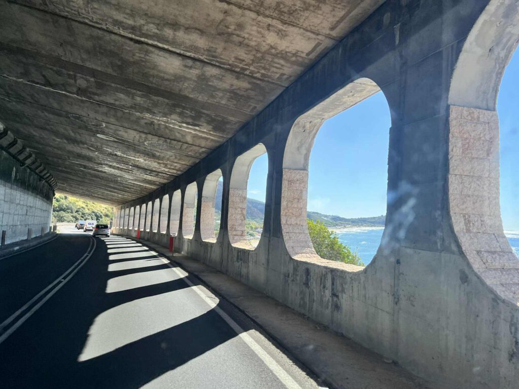 Så bär det av nedåt. Vi håller mellan 35–50 km/h, med hårnålskurvor hela vägen. Var det 48 kurvor upp, så är det minst lika många ned! Många är ännu snävare, så jag får ibland stanna mitt i kurvan, backa lite och ta nytt tag. Lutningen inåt känns läskig – man tror nästan bilen ska välta.
