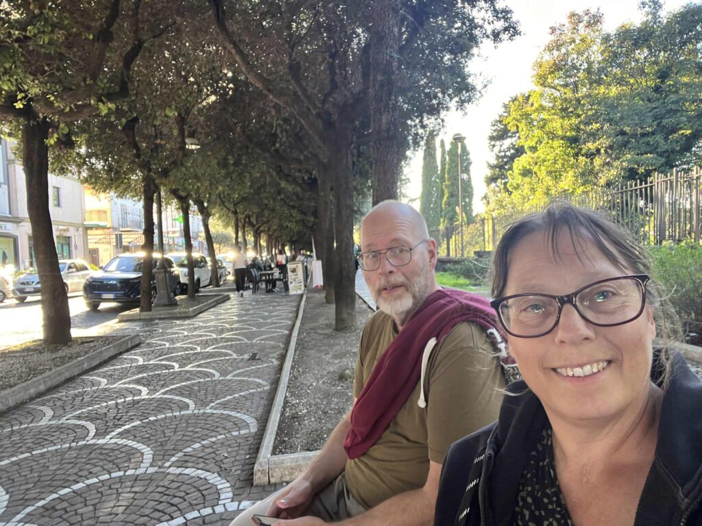 Nåväl, jag knappar in Bormio i Sygic och vi börjar köra. Det är relativt lugnt – lite krokigt och några vägarbeten här och där – men överlag trevligt. Vi åker längs en sjö med fantastiska vyer, men det finns absolut ingenstans att stanna på vägen norrut. Söderut däremot finns det flera rastplatser. Landskapet börjar förändras igen – från slättland till berg – och nu börjar tunnlarna. Den längsta idag var 7 925 meter! Vi kommer fram till Bormio och stannar för att byta förare. Annika har kört en stund, och nu är det min tur. Vi brukar turas om eftersom jag får ont i ryggen efter 12–15 mil. Idag sa hon: ”Nu byter vi innan du får ont!” – och så blev det.